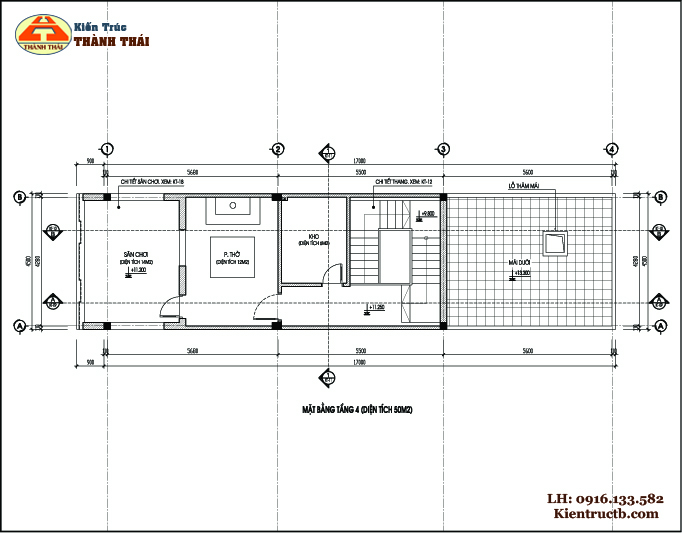 + tầng 4 bao gồm: 1 phòng thờ; 1 nhà kho và không gian trước mặt làm sân chơi