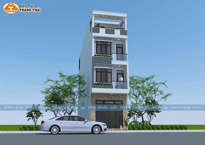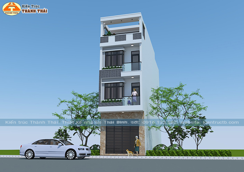 Chiều dài khu đất khá lớn nên việc bố trí cụm thang ở giữa theo dạng nhà lệch tầng, chia trước sau thành các phòng sinh hoạt là rất phù hợp. Vừa giúp thay đổi tạo sự đa dạng cho các không gian, vừa giảm bớt được chiều dài ngôi nhà (không phải bố trí hành lang đi từ trước ra sau). Dưới đây là một vài thông tin về mẫu thiết kế nhà tại Thái Bình.