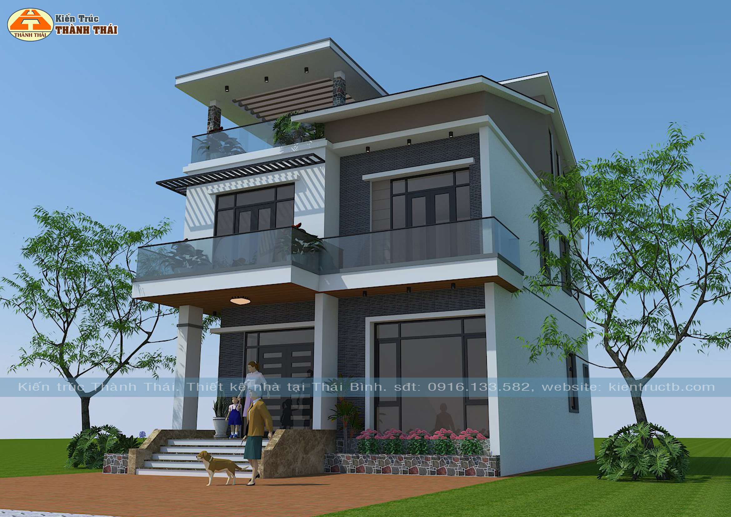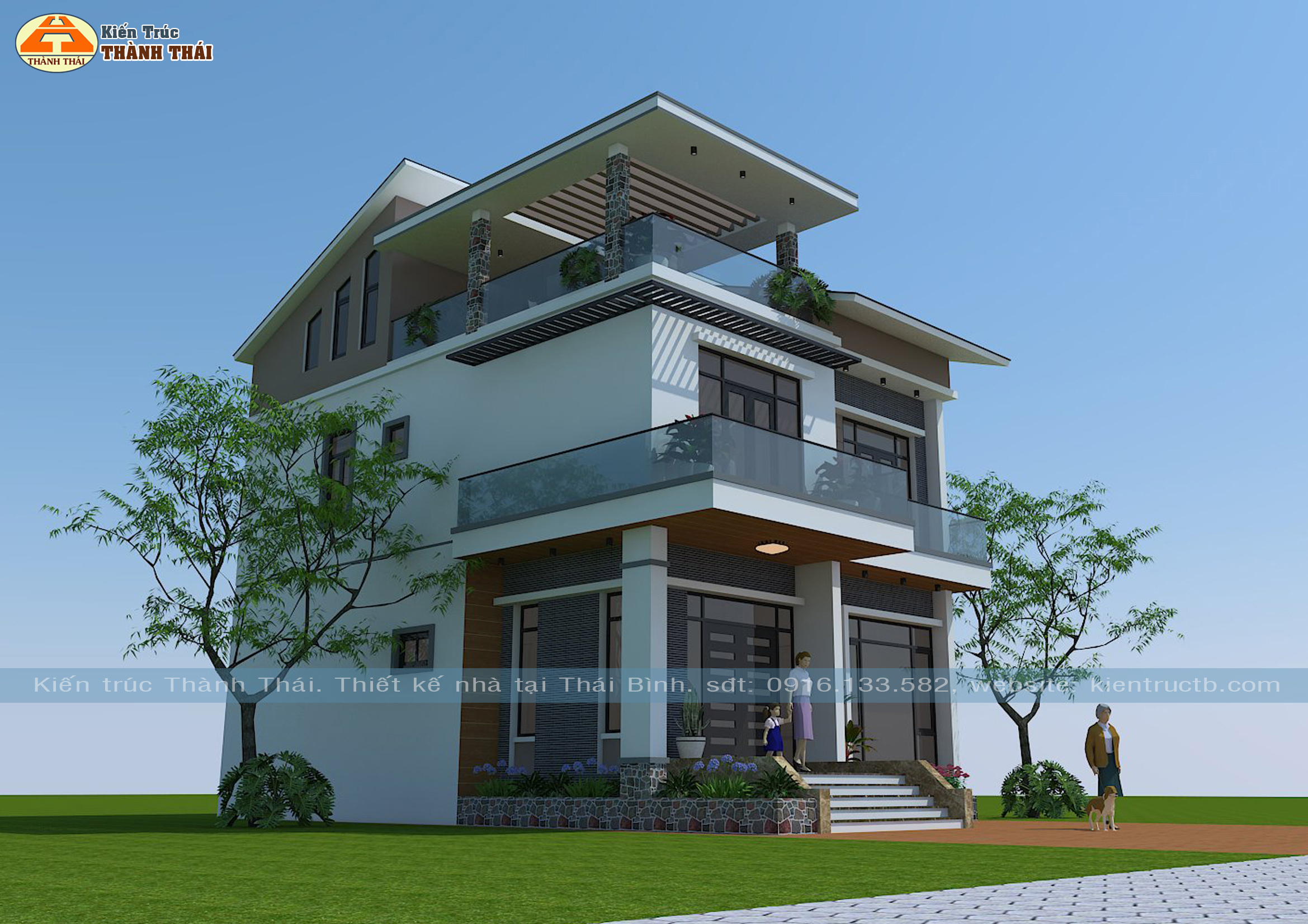 Cũng là mái chéo lợp ngói, nhưng không như mái nhật hay mái thái, Mái lệch đã phá vỡ sự cân đối của các diện mái để tạo ra một nết khác biệt. Chính điều đó đã tạo cho công trình vẻ cá tính và ấn tượng hơn. Dưới đây là một vài thông tin cơ bản về mẫu thiết kế biệt thự 2 tầng mái lệch tại Thái Bình.