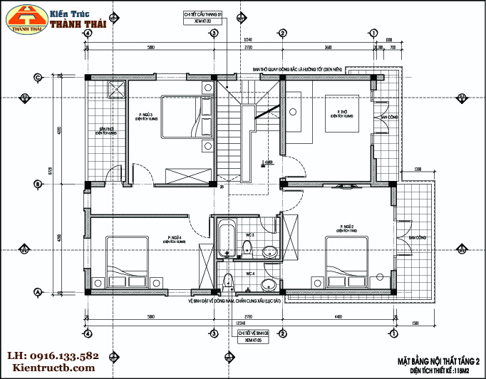 + tầng 2 bao gồm: 3 phòng ngủ (trong đó có 1 phòng khép kín); 1 phòng thờ và khu vệ sinh chung