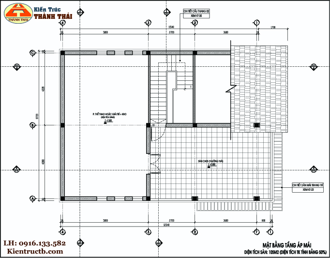 Bản vẽ mặt bằng bố trí công năng tầng tum công trình