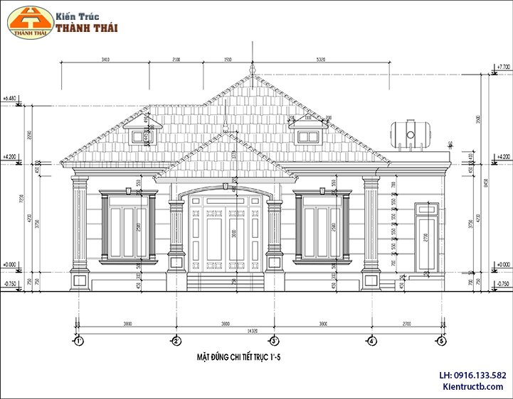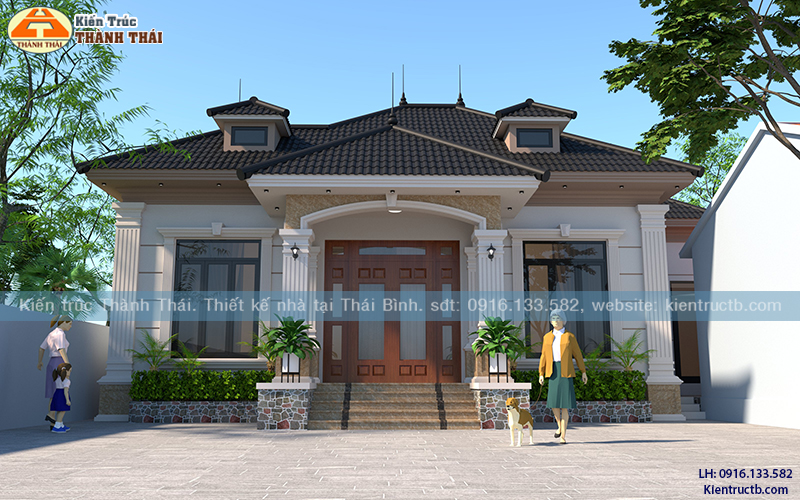 – Diện tích bao che là: 140m2 (kích thước tổng theo hai chiều ngôi nhà là 14,5mx13,5m)
