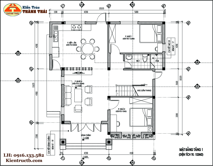 – Diện tích xây dựng là: 105m2 (kích thước đất xây dựng tối thiểu là 12mx10,5m)