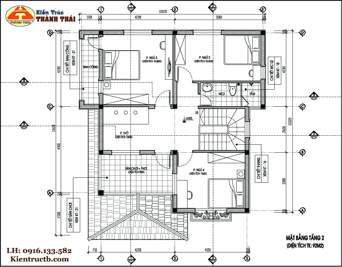 + tầng 2 bao gồm: 3 phòng ngủ; 1 phòng thờ và khu vệ sinh chung
