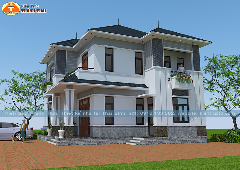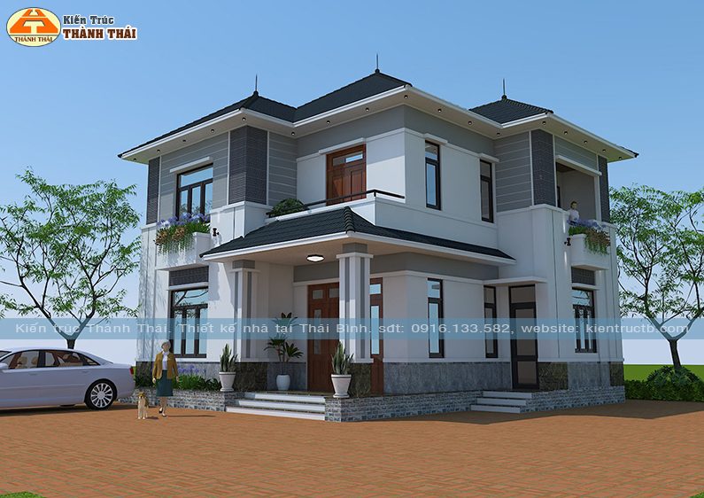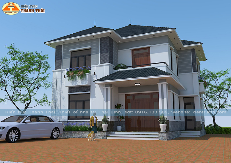 – Thiết kế theo dạng biệt thự 2 tầng mái nhật hiện đại