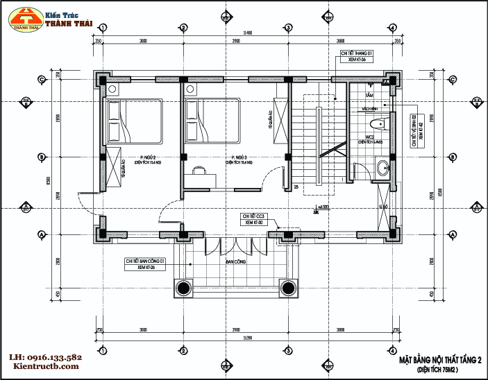 + tầng 2 bao gồm: 2 phòng ngủ; thang + ban công và 1 khu vệ sinh chung.
