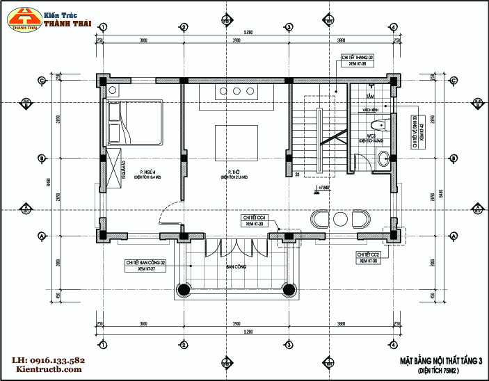 + tầng 3 bao gồm: 1 phòng ngủ; 1 phòng thờ; thang + ban công và 1 khu vệ sinh chung.