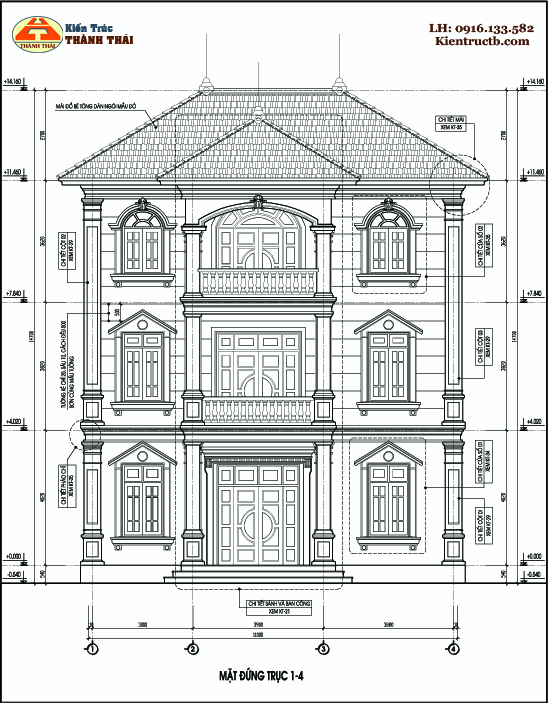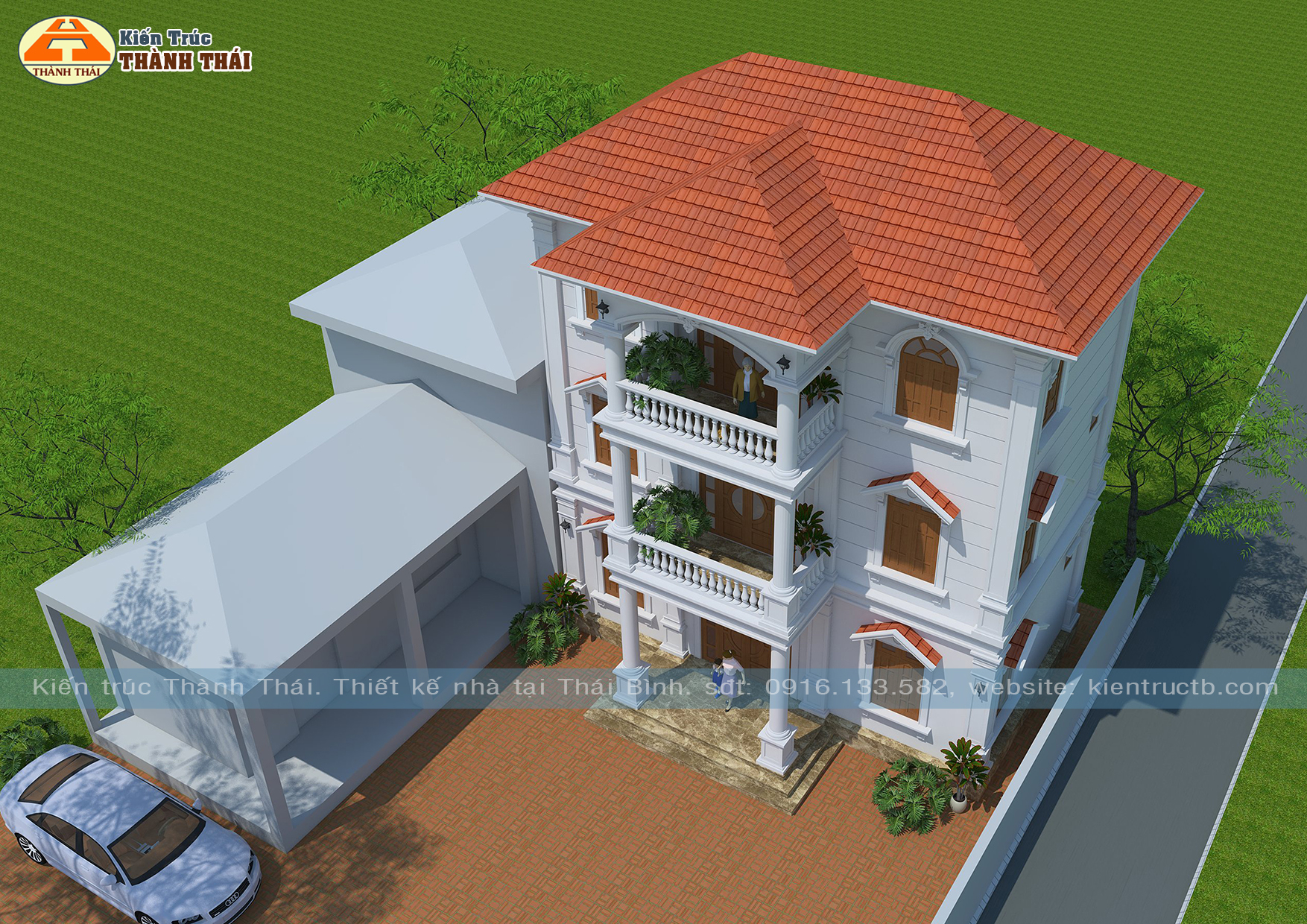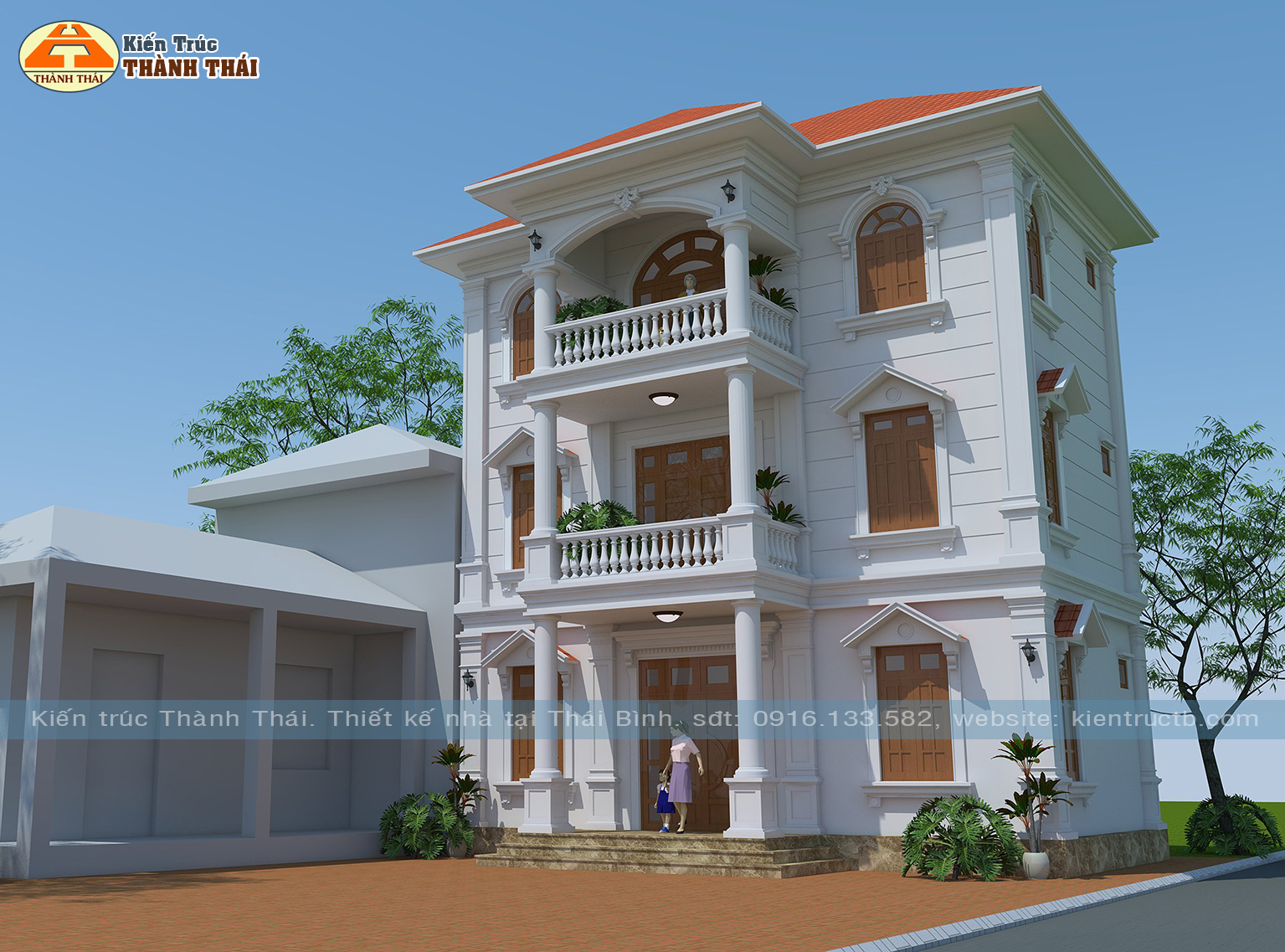 – Kiến trúc theo phong cách thiết kế biệt thự 3 tầng tân cổ điển mái nhật.