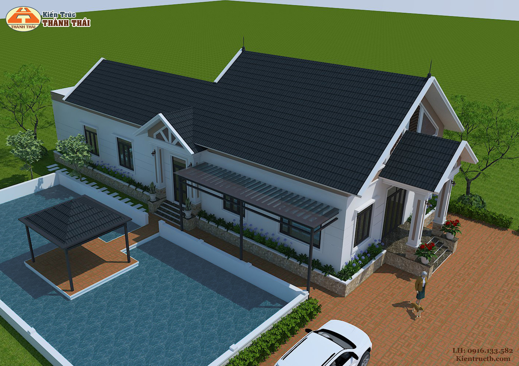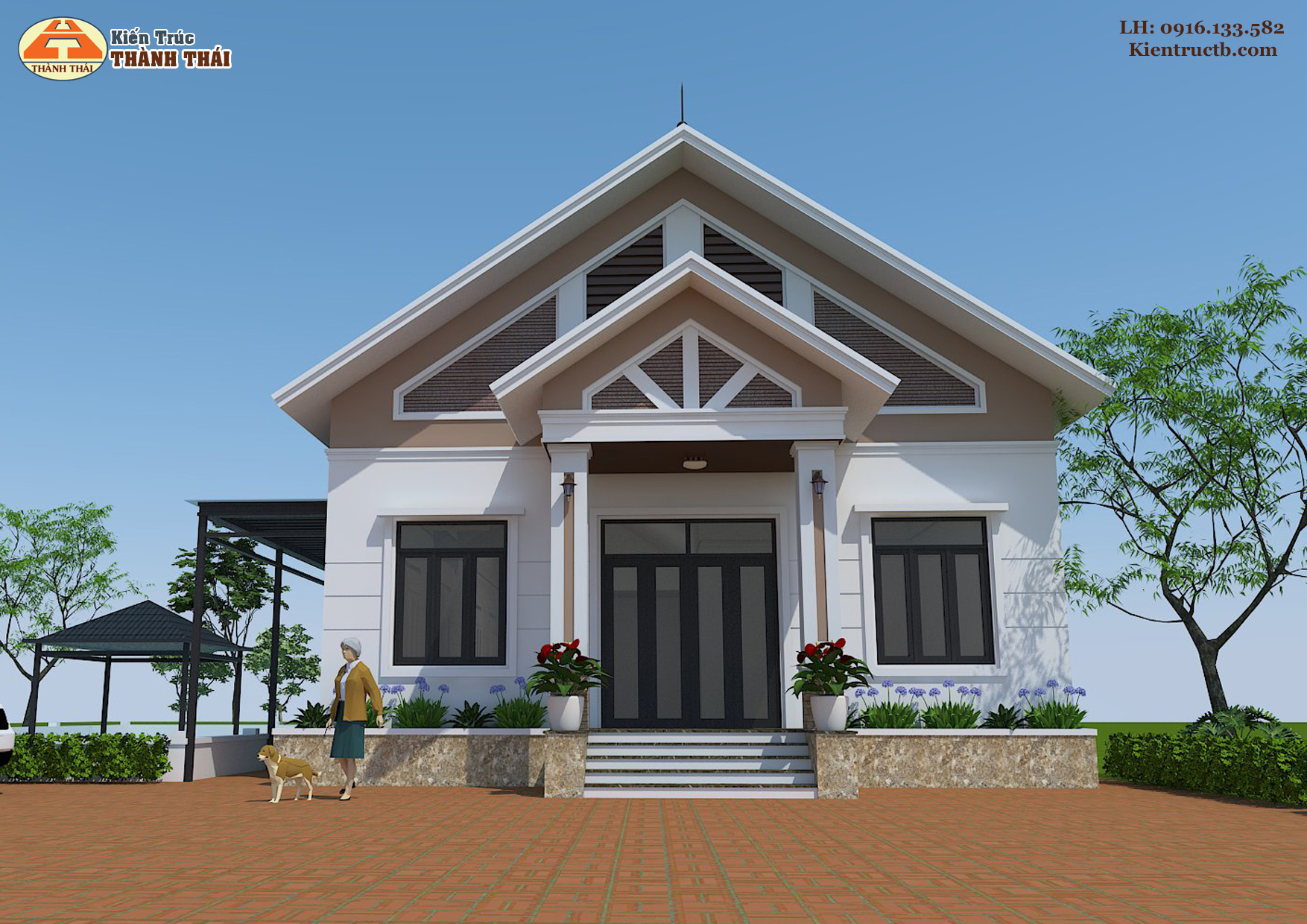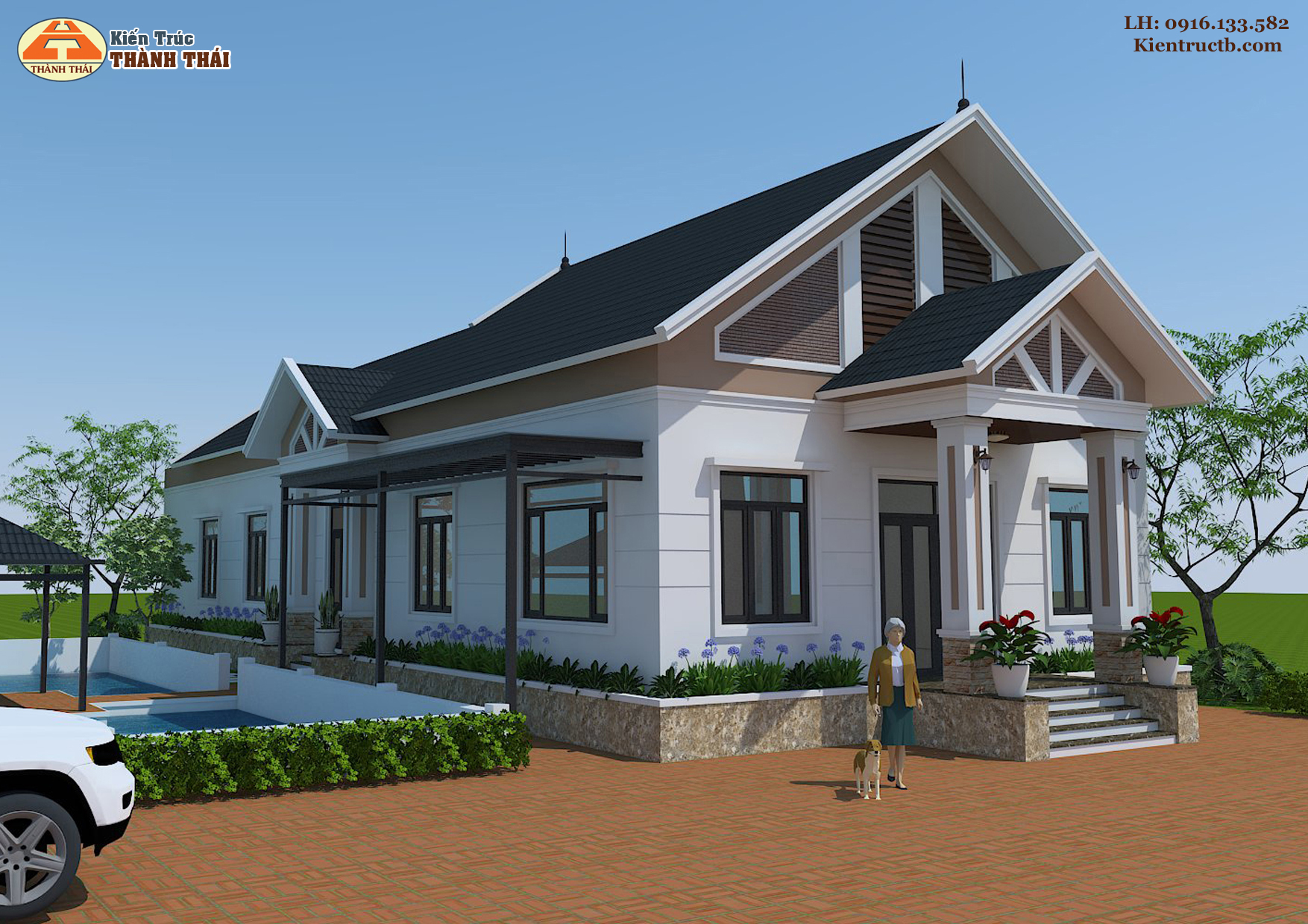 – Kiến trúc nhà theo phong cách mái Thái hiện đại.