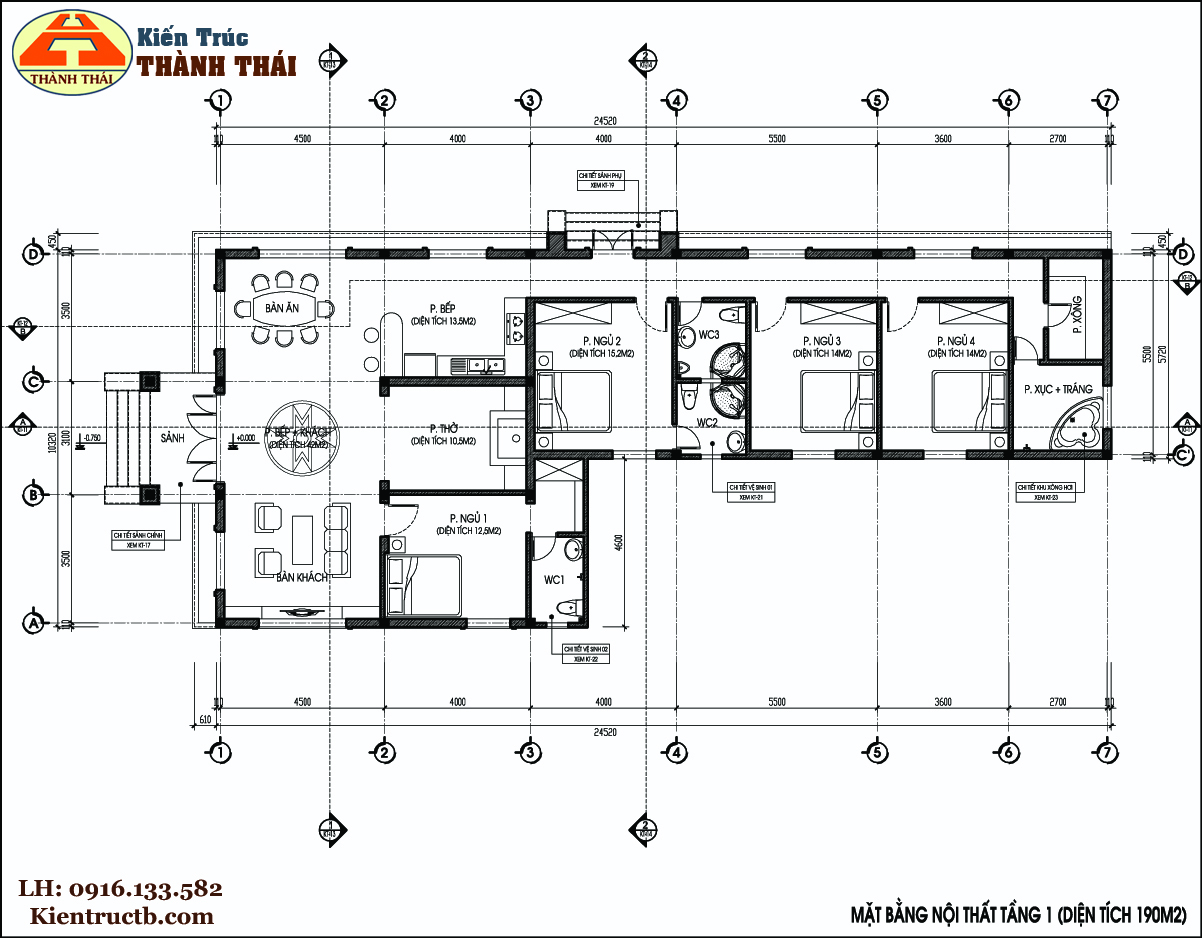 – Tổng diện tích sàn xây dựng 190m2