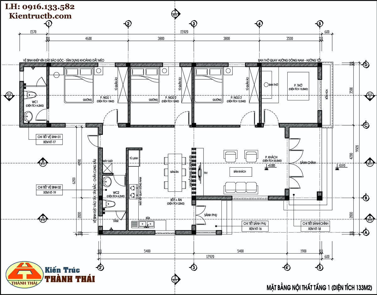 – Tổng diện tích sàn xây dựng 133m2
