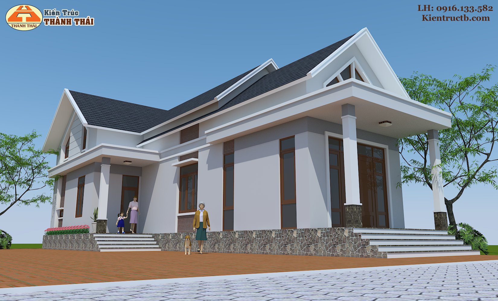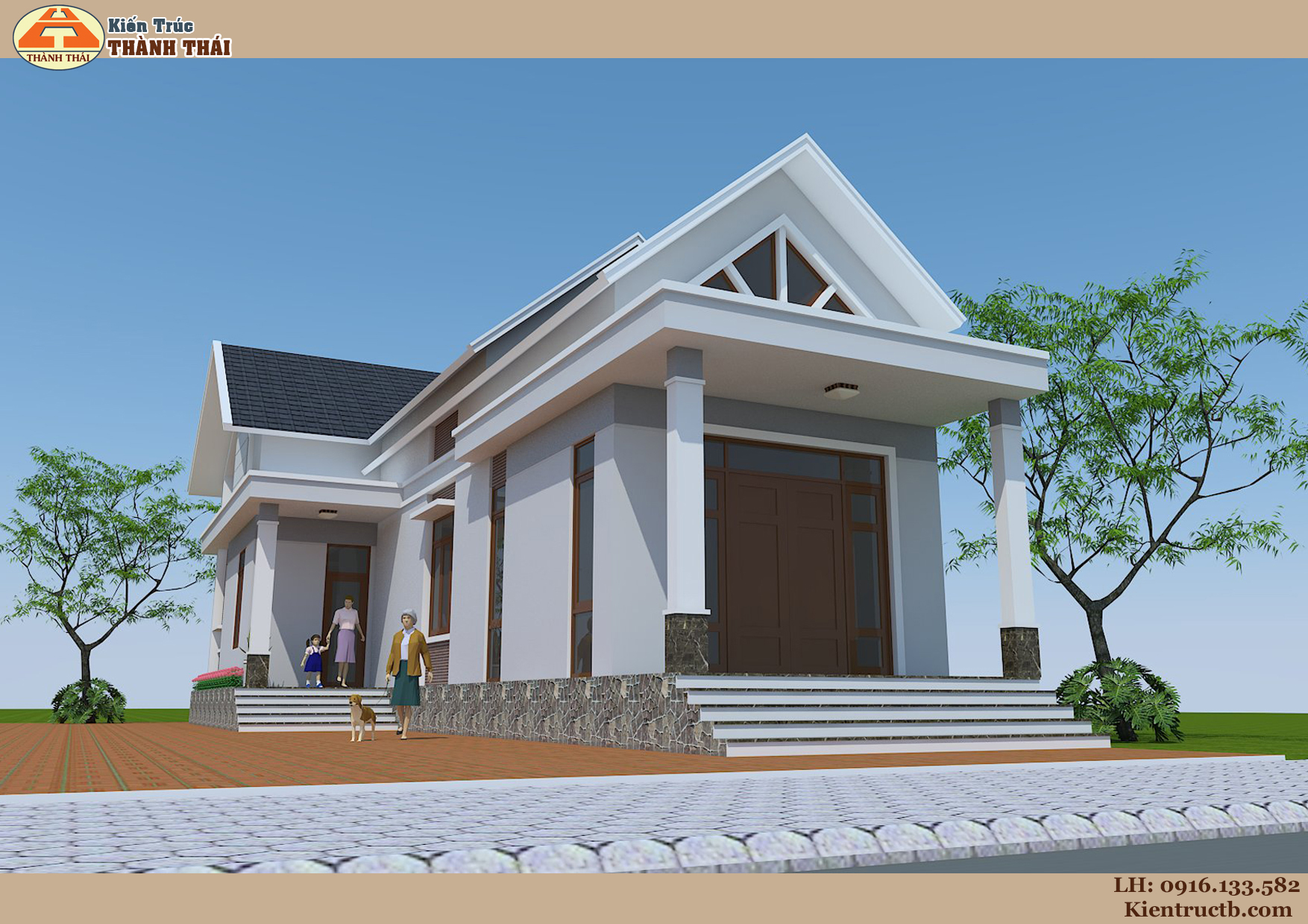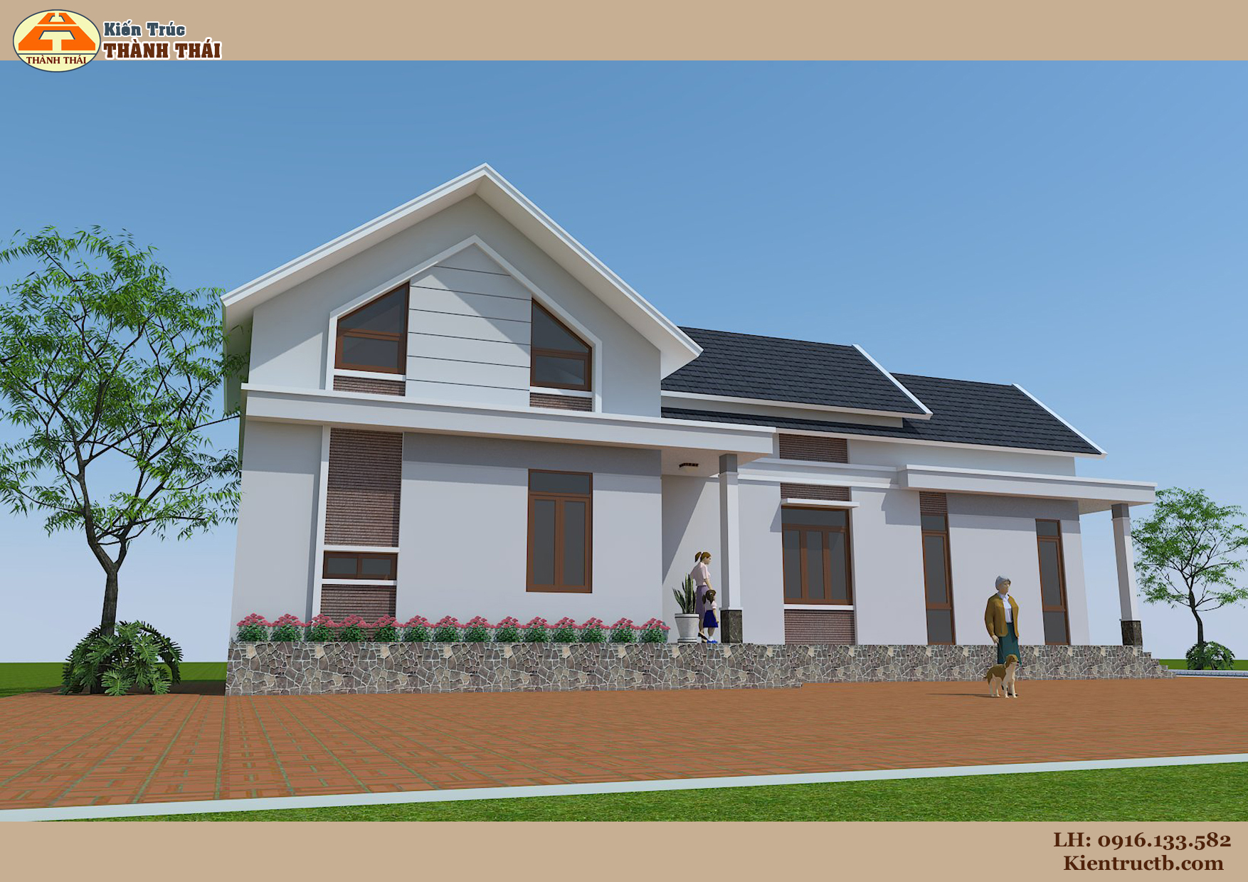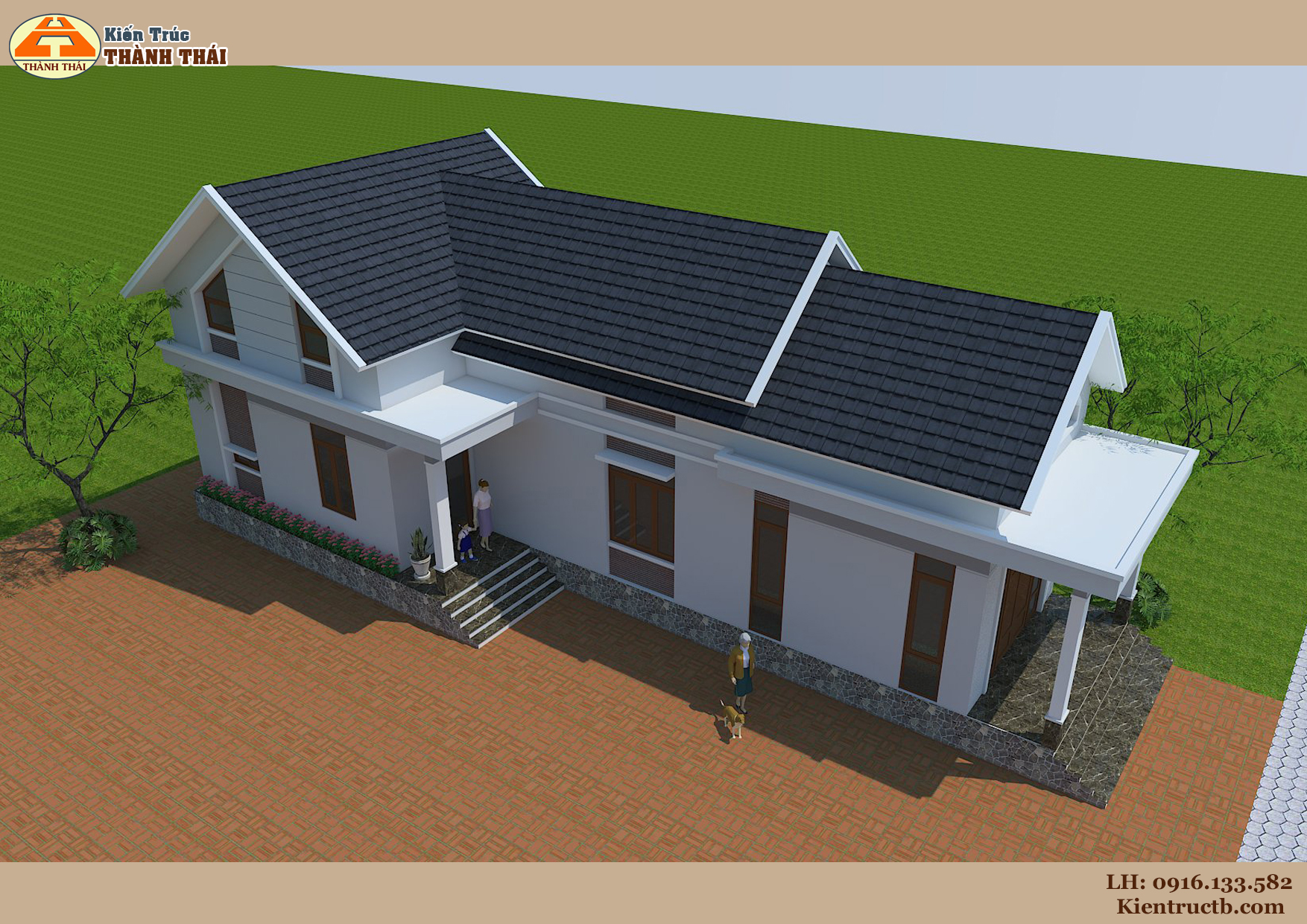 – Kiến trúc nhà theo phong cách kiến trúc mái thái hiện đại.