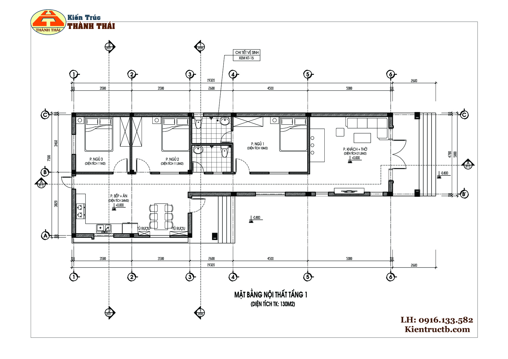 – Tổng diện tích sàn xây dựng 130m2